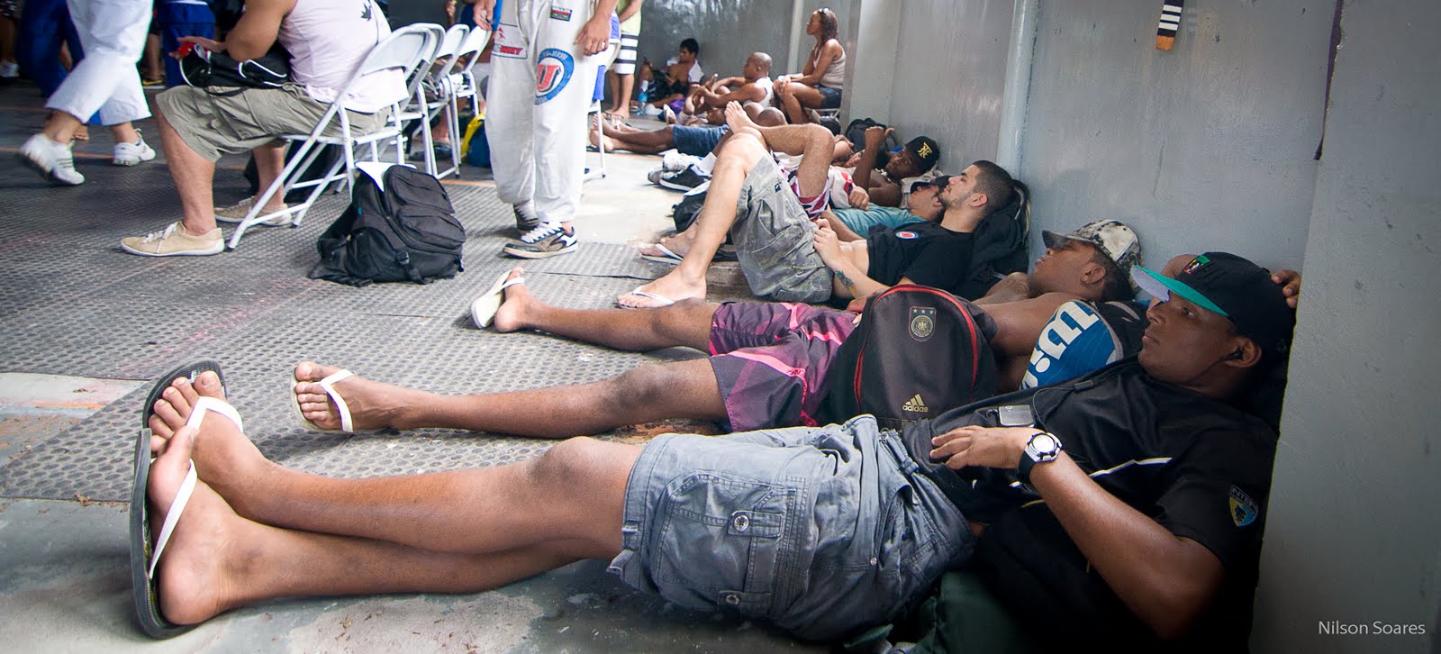 | como já era tarde por volta das 13 horas fomos embora e não vimos as lutas de muitos feras bravas como esse aí que estavam lá desde cedo aguardando a hora de entrar no tatame |